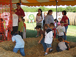 - Our lunch area consists of large tents with hay bales for seating, please no pop or juice, it attracts bees